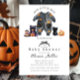 Celebre a chegada da sua abóbora com o nosso encantador Convite para Chá de fraldas de Halloween. Este design delicioso apresenta um adorável traje de bebê adorável adorado com abóboras e um gato preto encantador, capturando perfeitamente o espírito da estação. Convide seus amigos e família para se juntarem às festividades com este convite divino que dá o tom para uma celebração espetacular. Faça seu chá de fraldas inesquecível com este toque único e festivo!