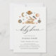 Quic boêmia ilustrou coelho, luas, estrelas e planeta, convite para chá de fraldas sobre tema celeste. Modelo do estilo design de tipografia elegante com coordenadas de fundo verde de cor rústica.