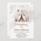 Convide amigos e família para comemorar seu pequeno convite para chá de fraldas boho. Apresentando um grupo branco adornado com penas, flores e sotaques tribais em tons suaves e neutros, este convite captura uma vibração calma e confortável. Ideal para uma menina ou uma celebração neutra em termos de gênero, esta design é moderna e animadora. Personalize com seus detalhes de eventos em minutos — uma escolha perfeita para chás de temas boêmicos.
