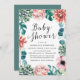 Convites elegantes para chuveiros de bebês com detalhes de seu chá de fraldas cercados por um quadro de suculentos de aquarela, flores, folhas de eucalipto e folhas de monstera em tons de verde, verde, rosa, laranja e coral. Os suculentos convites para bebês são perfeitos para primavera e chás de fraldas de verão!