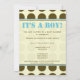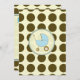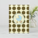 Um convite com um fundo de bolinhas castanho sobre o bege quente, com um fundo azul claro. Personalize o texto das fontes castanho e azul com detalhes do evento. O lado oposto é uma bolinhas sólida com uma carruagem azul de bebê dentro uma estrutura em forma de círculo correspondente.