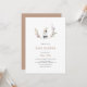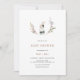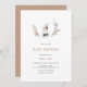 Celebrar os pais com este chá de fraldas temático coelho de aquarela, convidado com um belo coelho rodeado por uma coroa de flores silvestres com pequenos flores silvestres e um lado inverso de cor macia e bronca.