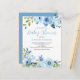 Cartão postal azul de chá de fraldas botânico floral. Trendy, bonito design de cor azul-água floral. Fácil de mudar o texto.