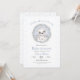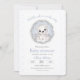 Um convite bonito e moderno para o chá de fraldas em branco e um pouco azul para as comemorações do inverno com um urso polar bebê giro e as estrelas azuis. Chá de fraldas de convite para modelo totalmente editável. - Kate Eden Art