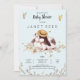 Convite para Chá de fraldas por País Russo Bunny Hat - O nosso tema Animal, chá de fraldas de convite neutro em questões de gênero, apresenta uma ilustração feita à mão de animais florestais bonitos e muito mais.