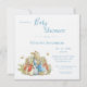 Adorável convite de chá de fraldas de Rabbit desenhado à mão. As cores suaves simples definem o tom de um doce chá de fraldas temático. Um convite tão doce e simples para esse evento especial. Fonte azul e quadro fino foram usados para criar este adorável convite.