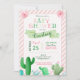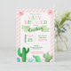 Chá de fraldas de cacto de aquarela com tons de verde e rosa. Correspondendo ao fundo com cactos e flores rosa.
