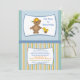 Um ursinho esportivo, com um pato de brinquedo, é apresentado neste adorável convite de chá para o bebê. Sombras de azul são complementadas com listras coloridas de pinos para criar um convite na moda que todos adorarão. O cartão é fácil de personalizar com seu texto, fonte, cor da fonte e escolha de seis tipos de papel. Não exatamente o que você está procurando? Todos os nossos produtos podem ser personalizados para atender às suas necessidades sem custos adicionais. Basta entrar em contato conosco em heartfelthelper@gmail.com. Coordenar produtos disponíveis: