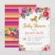 Chá de fraldas Carousel Horse convite com belos florais roxos e confete de ouro.