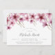 O convite para chás de fraldas florais chic apresenta uma borda superior de flores de cereja cor-de-água cor-de-rosa. Personalize com os detalhes do seu chá de fraldas no moderno roteiro escrito à mão e no sans serif lettering. Convites invertendo-se para sutis cinzas pálidas e listras brancas.