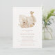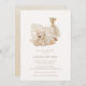 Este design rústico de berçário inspirado na boêmia apresenta decoração aquosa de berçários de bebês, um doce stuffie e girafa em belos tons neutros. O lado traseiro deste convite apresenta um fundo com padrão de cor d'água bege. Um design elegante, chique e adorável.