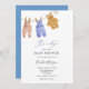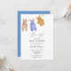 Convite ao chá de fraldas com uma ilustração adorável de roupas de bebê clássicas de vintage, penduradas numa linha de roupas. Personalize com suas informações ou clique em "Clique para personalizar mais" para editar estilos de fonte, tamanho e cores.