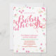 Personalize este convite para Chás de fraldas de na moda com pulverizações coloridas, a maioria cor-de-rosa, num fundo branco. Perfeito para uma menina. Personalização rápida e fácil, altere todas as informações de modelo com as suas próprias.