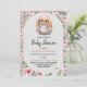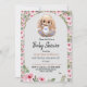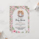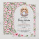 Cartão de convite de chá de fraldas de camada plana com rosas de cor d'água adoráveis e coelho recheado fofo.