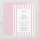 Um convite de chá de fraldas branco, cor-de-rosa-chic, com riscas brancas, com um arco pastel doce no topo. O moderno design de pré-disquete combina charme lúdico com elegância de eterno, fazer perfeito para celebrar uma futura mãe no estilo. Personalize com seus próprios detalhes para um chá de fraldas único e memorável.