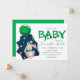 Convite para chá de fraldas, Boy Rabbit Invitation Um balão flutuando coelho bebê personalizado para um garotinho. Crie e personalize rapidamente o seu convite verde e branco ao Chá de fraldas. Clique no botão "Personalizar!" para alterar o tamanho do texto, a cor do texto, o estilo da fonte e muito mais!