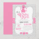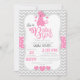 Este convite para o chá de fraldas apresenta um padrão de fêmur de cinza, um motivo de bolinhas rosa e branco, e um adorável filhote rosa vestindo uma arco de bolinhas branca e cinza no seu ouvido. Seus convidados se apaixonarão por estes 100% de convites de chá de bebê totalmente personalizáveis!