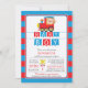 Um convite para chá de fraldas de macaco safari da selva moderna, com um macaco giro montado num comboio de chocolate brilhante e colorido, num fundo de faixa vermelha e azul com sotaque de travessia da ferrovia e banners pendentes. Sacudir que o chá de fraldas dos nossos rapazes convide para ver uma correspondência para um toque especial extra. Perfeito para um tema macaco, tema da selva ou tema safari zoológico, chá de garotinho.