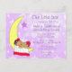 A mão de chá de fraldas de uma menina étnica roxa doce, puxada pelo bebê dormindo na lua convida. Este bebê é mais escuro para representar um bebê hispânico. <3