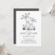 O convite para chás de fraldas Girafa com a mãe cinzenta e girafa de bebê em um fundo branco para um chá de fraldas neutro. Sacudir nosso convite para ver um quadro negro para um toque especial. Visite nosso compro para ver itens correspondentes.