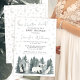 Os pinheiros florestais com animais da floresta e lua com as estrelas convite para chás de fraldas neutro em questões de gênero à noite, aguardam aventura temática.