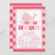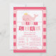 Convite moderno para chá de fraldas de baleias, com uma linda baleia princesa rosa, colocada sobre fundo de faixa rosa, com sotaque de âncora e banners de pingente. Sacudir nosso chá de fraldas de garotas convidarem para ver um toque especial. Perfeito para um chá náutico temido de menina.