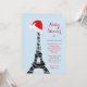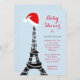Um chapéu vermelho brilhante de Papai Noel e luzes cintilantes decoram a Torre Eiffel neste inverno, inspirado parisiense no convite ao chá de fraldas, fazer perfeito para o chá de fraldas temático francês, Paris, Parisiense, inverno, Natal, feriado, romântico ou Marie Antoinette.