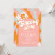 Convite para Chá de fraldas Groovy. Chá de fraldas feminino convida com flores margaridas estilo 70s e cores rosa, verde-menta e laranja. Boho retro Groovy baby chá de fraldas.