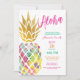 Convite para Chá de fraldas de abacaxi tropical. Aloha. Chá de fraldas. Partido Tropical. Summer Hawaiian Laua Sai. Abacaxi Dourado e Colorido. Para mais personalização, clique no botão "Personalizar" e use nossa ferramenta de design para modificar este modelo.