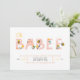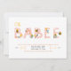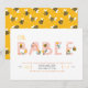 Que fofo! Este doce (sem trocadilho!) design de convite ao chá de fraldas apresenta a palavra "bebê" em letras cor-de-rosa decoradas com abelhas e flores. A parte de trás do convite mostra pequenas abelhas bonitinhas voando sobre um fundo amarelo. Entre em contato com o designer para produtos correspondentes. Copyright Elegant Invites, todos os direitos reservados.