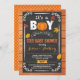 Invimento de chá de fraldas de abóbora. Com o texto "É um MENINO!" Pode ser editado para ser "Chá de fraldas" ou "Chá de fraldas Coed" Perfeito para outono / outono ou ação de graças / festa de Halloween! Receba este convite fofo agora!