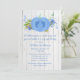 Convite de chá de fraldas inspirado no outono feito em um olhar de madeira lavado branco rústico, com gráficos de uma abóbora azul e flores com impressões de pezinhos azuis na abóbora. Personalize todo o texto do seu chá de fraldas de outono.