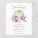 Este convite de chá de fraldas de uma garota de abóbora floral cor-de-rosa é perfeito para um chá de fraldas elegante. A design apresenta belas flores de aquarelas, de cor rosa-poeirenta, marfim e pêssego, com erva-pampas e abóbora. Uma letra elegante é o toque perfeito para terminar. Personalize com todos os detalhes do seu chá de fraldas.