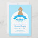 Pequeno Design de amendoim, com ilustração fofinha de amendoim, azul e branco. Simples, elegante, belo convite para o seu evento especial. Personalize este Chá de fraldas na moda com os detalhes do evento de forma fácil e rápida, pressione o botão Personalizar para reorganizar e formate o estilo e a colocação do texto.