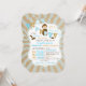 Placa de fundo de textura azul e kraft de luz solar e banner de bunting com bebê no carnaval de amendoim design de convite para chá de fraldas.