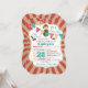 Plano de fundo de textura vermelho e kraft de sunburst e banner de bunting com bebê no carnaval de amendoim design de convite para chá de fraldas de .
