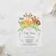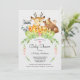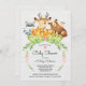Chá de fraldas de madeira de cor aquosa, de cor branca, com um adorável guaxinim, raposa, veado, ursinho e coruja, com folhas e flores cor-de-rosa sobre fundo branco. Perfeito para um chá de fraldas de meninas, chá de fraldas de meninos ou chá de fraldas neutro em gênero.