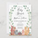 Convide a família e os amigos a celebrarem esta alegre ocasião com este belo e caprichoso convite à aquarela. Esses amigos da floresta, raposa, guaxinim, ouriço, coelho e esquilo estão cercados por verde rústico. Facilmente personalizável. Original Watercolor © Michele Davies.