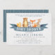 Chá de fraldas Blue and cinza Woodland Lumberjack Boy convite com urso, guaxinim, alce, veado, coruja e coelho.