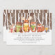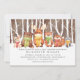 Adorável convite à chá de fraldas de animais florestais de inverno para um chá neutro do ponto de vista do gênero, fixado num fundo de madeira rústica. Visite o nosso compro para a coordenação de pontos.