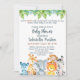 Convite para o tema do chá de fraldas de animais de safari branco.