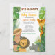 Animais bonitos de safari em um motif da selva com um adorável menino em safari. Personalize todos os detalhes do seu evento. Disponível em 3 tons de pele.