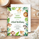 Animais africanos do Safari: convite para chás de fraldas agudos com aquarela, neutro em relação ao gênero, com folhas tropicais