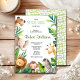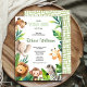Animais africanos do Safari: convite para chás de fraldas agudos com aquarela, neutro em relação ao gênero, com folhas tropicais