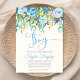 Um convite clássico ao chá de fraldas elegante que cria um eterno à procura do seu evento. Colocado sobre um fundo com uma disposição natural de folhagem verde e azul que enquadra o texto superior e toques da mesma folhagem verde para enquadrar o convite no verso. Este convite tem muito espaço no meio para personalizar e criar o convite perfeito para o seu partido.