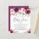 Elegante convite de chá de fraldas, amigável em orçamento, com buquês florais de cor rosa-pia-pincel-roxa, vermelho-burgundy e roxo-púrpura, um roteiro de na moda e uma simples tipografia moderna.