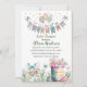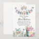Capturar a essência da inocência delicada com este convite à chá de fraldas de aquarela pastel, adornada com borboletas charmosas, um encantador cesto de flores e um banner de balão branco.