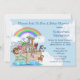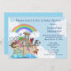 A arca de Noah com todos os animais dois por dois. Fundo azul com nuvens brancas. Mamãe vai adorar este convite para chás de fraldas do templo cristão. Perfeito para o chá de fraldas do Rapaz. Personalize com os detalhes do seu chá. alguns gráficos por encantadores
