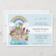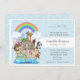 A arca de Noah com todos os animais dois por dois. Fundo azul com um embelezamento cardíaco azul. Personalize com os detalhes do seu chá.