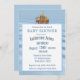 Convite ao chá de fraldas para rapazes com o barco do Noah e animais numa página de água e ondas. Placa de chá de fraldas divertida com modelo de fácil utilização para informações de sua parte.